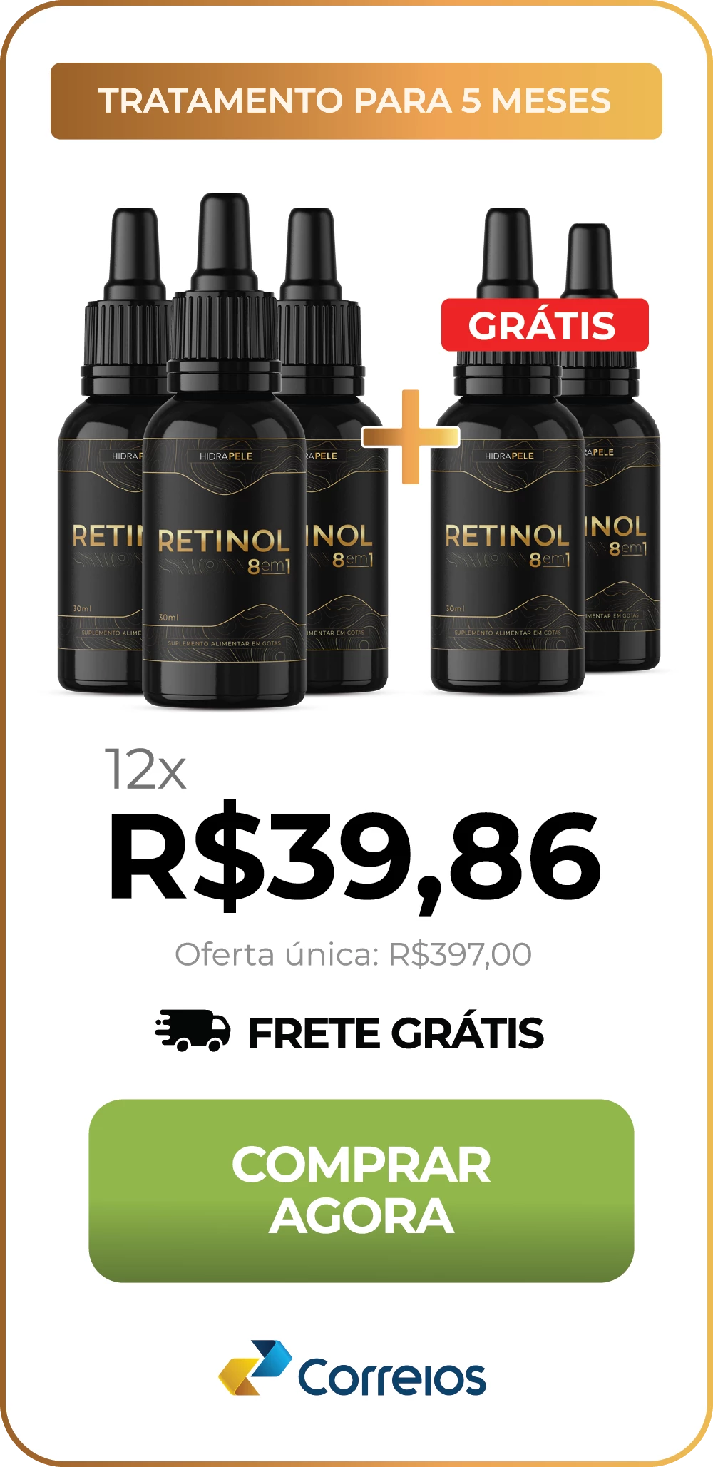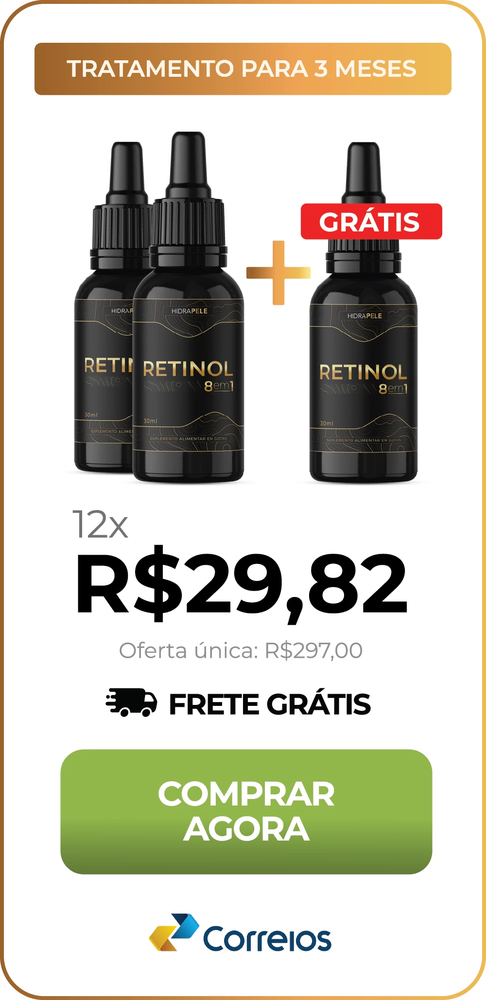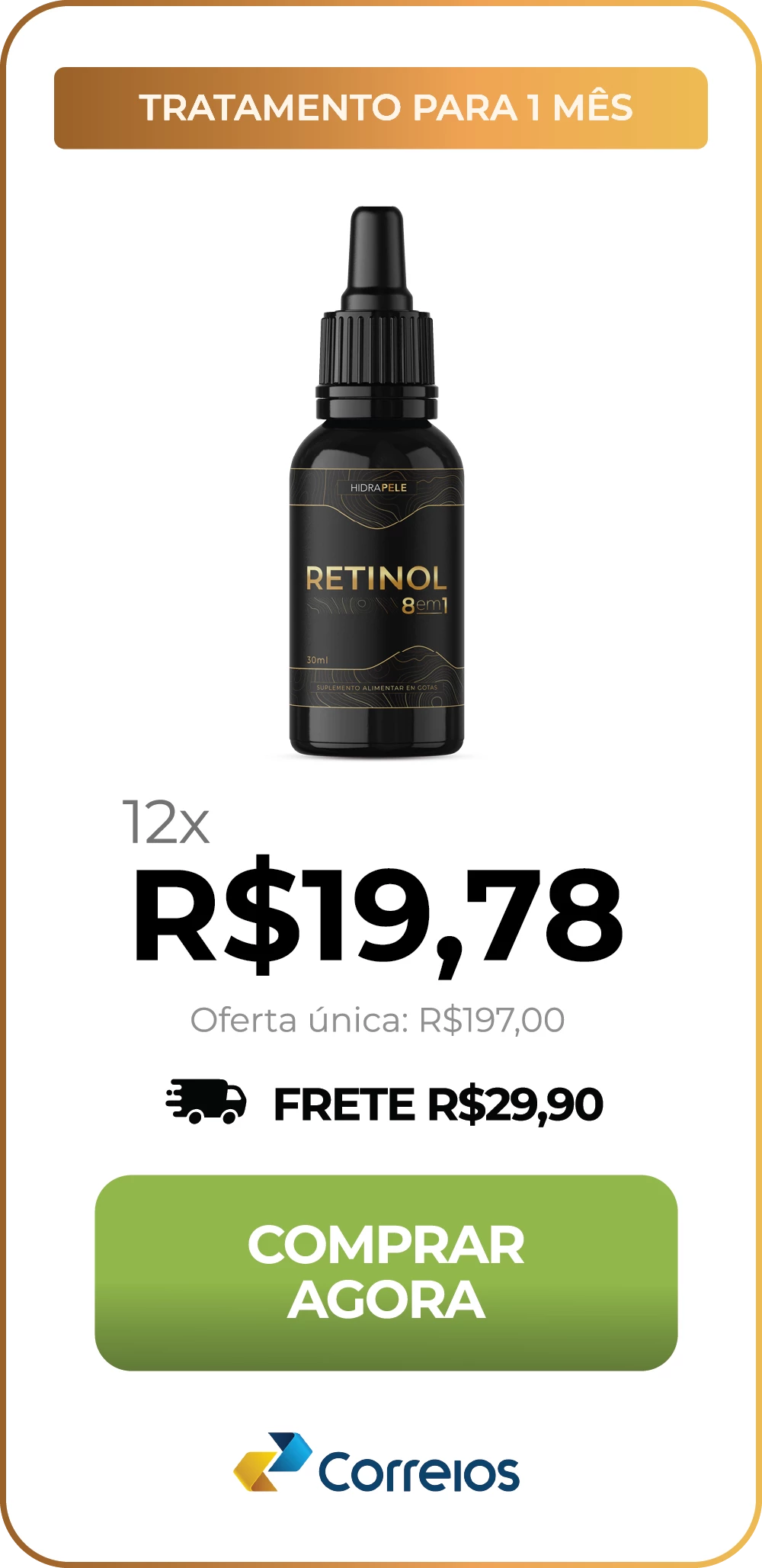 O retinol é um derivado da vitamina A que possui a função de estimular a renovação celular, auxiliando na prevenção e no tratamento do envelhecimento